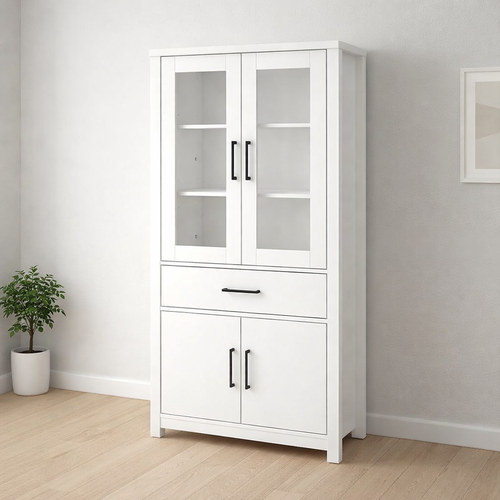 Aparador vitrina 4 puertas – Roble / Blanco Melamina